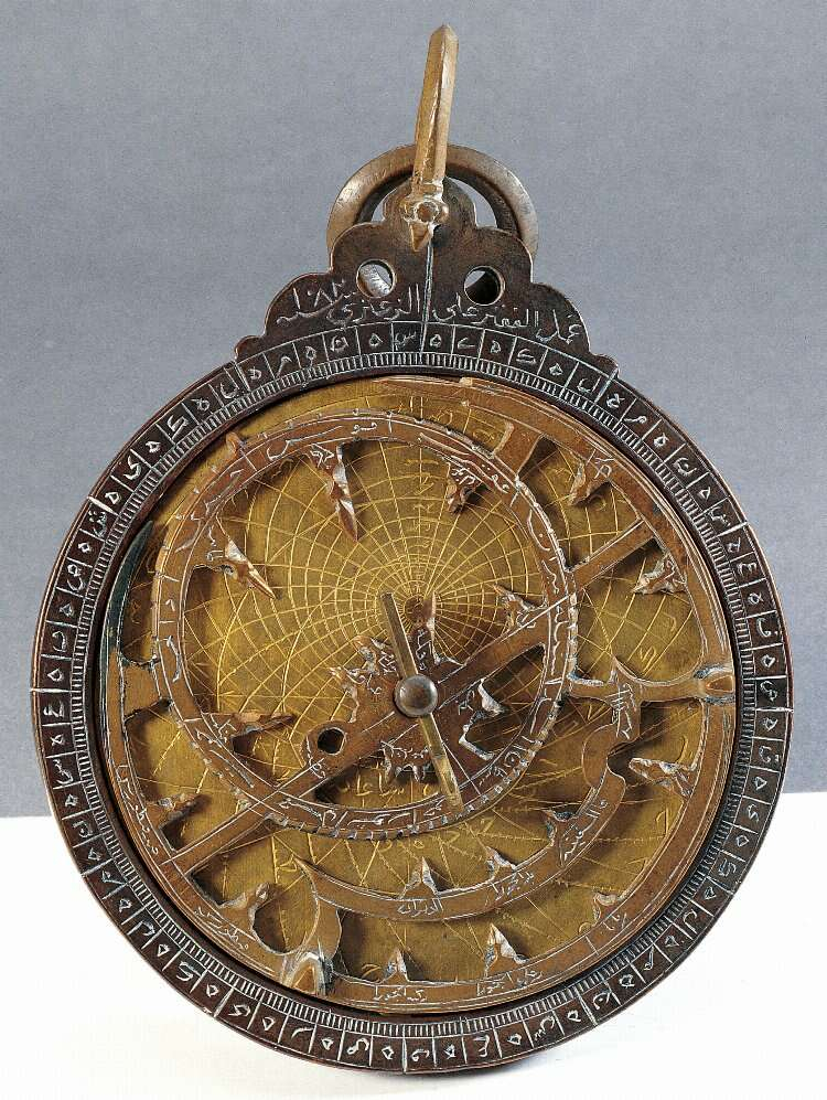 Usturlab: 1671 yılında Alî al-Za’tarî tarafından yapılan bir Osmanlı-Türk usturlabı. Usturlablar, gök cisimlerinin yerlerini belirlemek için kullanılıyor. Aynı zamanda Güneş ve yıldızların önceden hesaplanmış konum çizelgelerinden faydalanarak zamanı belirliyor. Ortaçağ İslam ülkelerinde usturlablar, gündelik yaşamda namaz saatlerinin saptanmasında da kullanılıyordu.