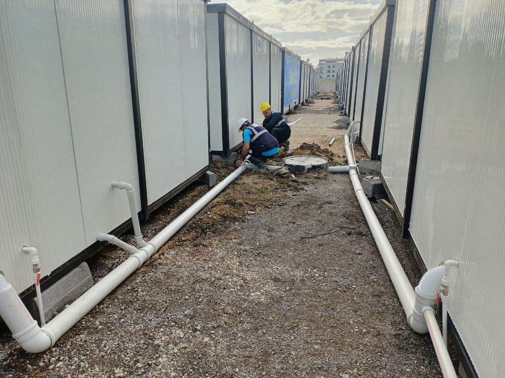 SAKARYA (İGFA) - Sakarya Büyükşehir Belediyesi Su ve Kanalizasyon İdaresi (SASKİ), Hatay’ın Antakya ilçesinde Büyükşehir Belediyesi tarafından kurulumu devam eden Kardeşlik Kenti’nde bulunan konteynerlerin atıksu ve içme suyu bağlantılarını sürdürüyor.