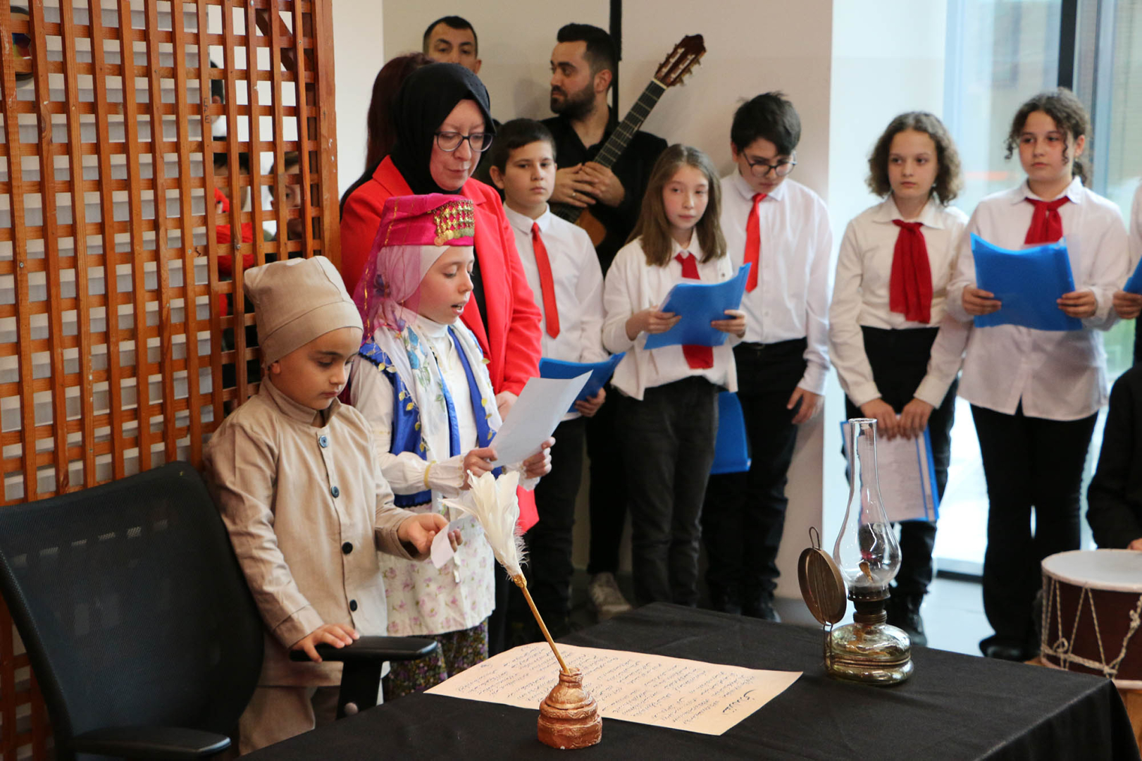 Saygı duruşu ve İstiklal Marşı ile başlayan programda milli marşımızın her kıtasını ayrı bir öğrenci okudu. SGM’li öğrenciler daha sonra oratoryo ve drama gösterisiyle bundan tam 108 yıl öne kanlarıyla toprağı sulayan, vatanları için canlarını siper eden kahraman şehitlerin hatırasını yâd etti.