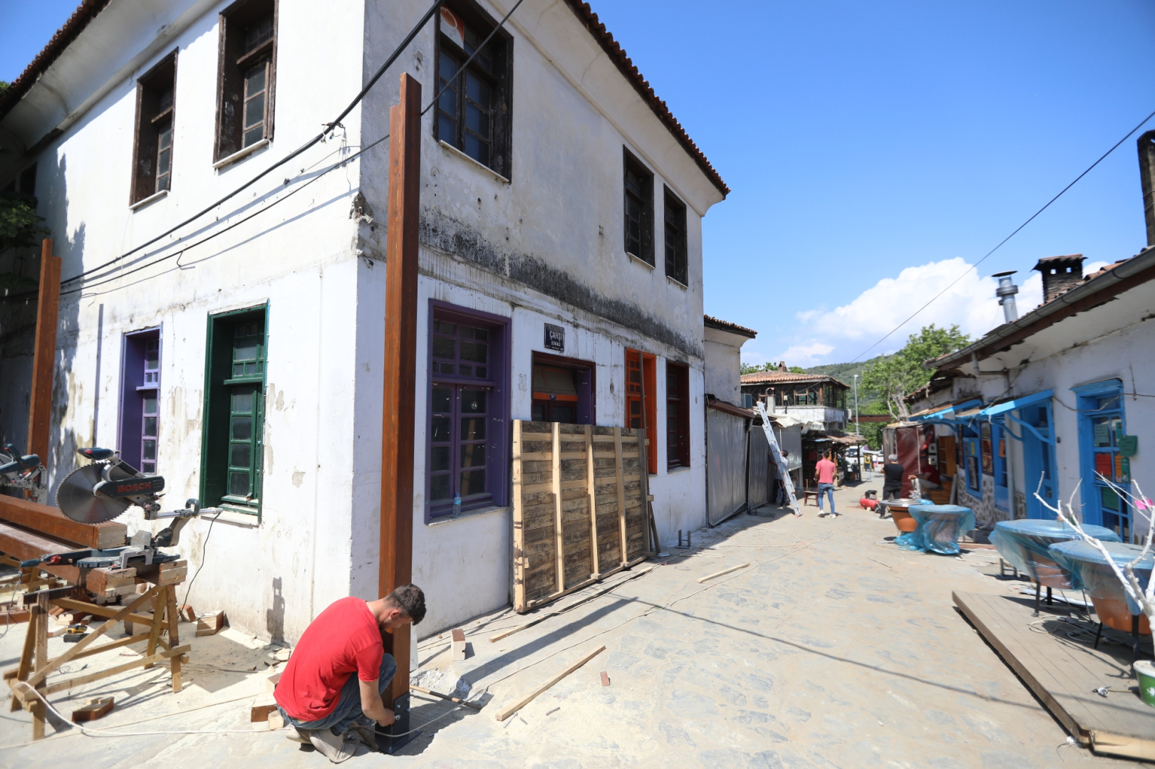 Efes Selçuk’un turistik köyü Şirince’de yerli ve yabancı ziyaretçiler için büyük önem arz eden çarşıda yenileme çalışmaları başladı.