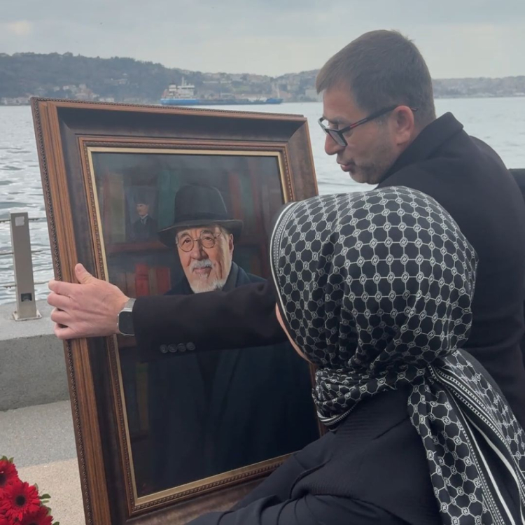 Cenaze töreninde KADKON Başkanı Betül Gülbahar hanımefendi ile birlikte hocamızın o özel tablosunu sevenlerine sunmak benim için hüzünlü bir teselli oldu. Bu eşsiz eserin mimarı olan Azerbaycanlı sanatçı CoşqunHümbətov (Coshqun Art), hocamızın o karakteristik bakışlarını ve entelektüel derinliğini fırçasıyla tuvale muazzam bir şekilde yansıtmış.