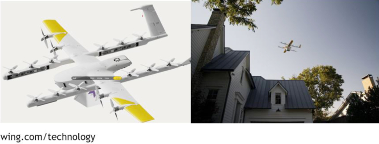 Drone ile teslimat alanı da lojistik, acil müdahale ve sağlık hizmetleri için sunulan çözümlerle hızlı bir büyüme gösteriyor. Aşağıda şirketlerin şu anda geliştirmekte olduğu drone teslimat konseptlerine birkaç örnek verilmiştir: