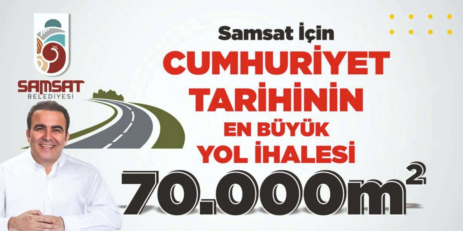 Başkan Fırat, bugüne kadar Samsat’ımıza sayısız yatırımlar yaparak vatandaşlarımızdan tam not aldıklarını belirterek, "Yine Samsat’ımız için bugüne kadar yapılan yolların tamamından fazla tam 70 bin metrekarelik bir yol ihalesine çıkıyoruz. AFAD Konutları inşaatları da bittikten sonra ilçe merkezimizde yolu olmayan tek bir sokak kalmayacak" diye konuştu.