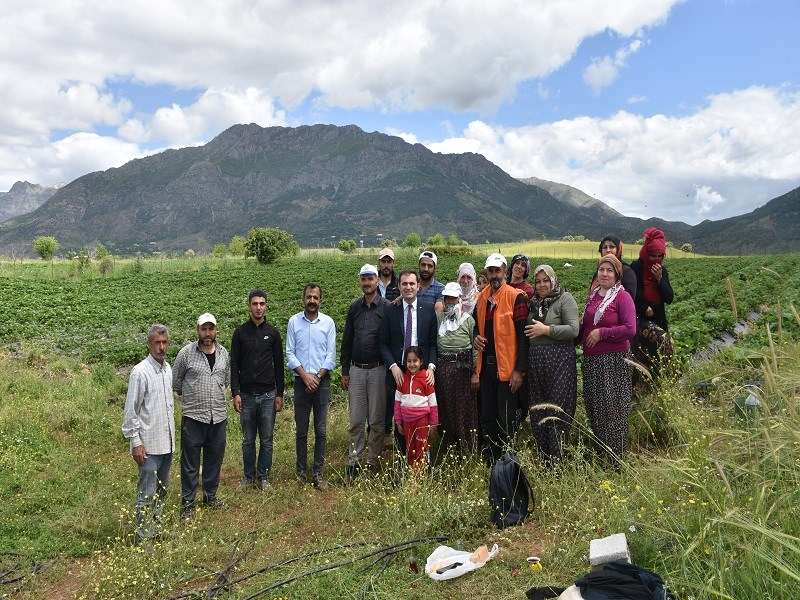 Sason Kaymakamı Murat Mete Coğrafi İşaret olarak tescillenen “Sason Çileği” hasadının başlaması münasebetiyle hasat yapan vatandaşlara eşlik etti.