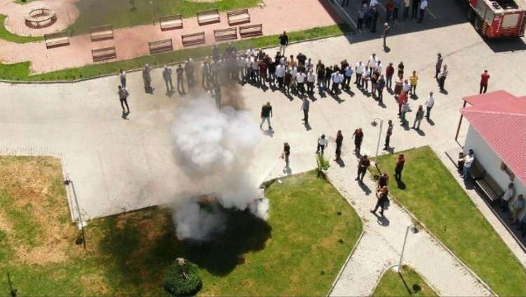 Senaryo gereği tatbikat sırasında İl Milli Eğitim Müdürlüğü bahçesinde meydana gelen yangın olayı, itfaiye ekipleri tarafından zayiatlar en aza indirilerek, kontrol altına alınma ve söndürme faaliyetleri gerçekleştirildi.