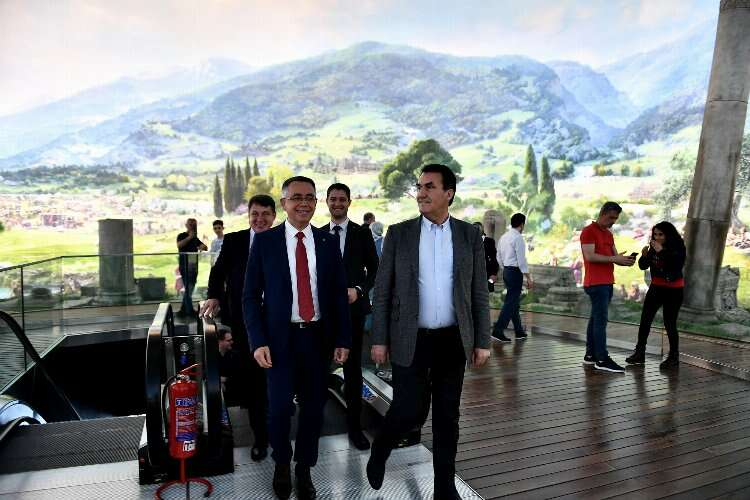 BURSA (İGFA)- Osmangazi Belediyesi tarafından yaptırılan dünyanın tam panoramik en büyük müzesi Panorama 1326 Bursa Fetih Müzesi’ni gezen Bulgaristan’ın Kırcaali Belediye Başkanı Hasan Azis, Hak ve Özgürlükler Hareketi (HÖH) Kırcaali İl Başkanı Resmi Murat ve HÖH Kırcaali Milletvekili Pavlin Krastev, müze içerisinde adeta tarihi bir yolculuğa çıktı.