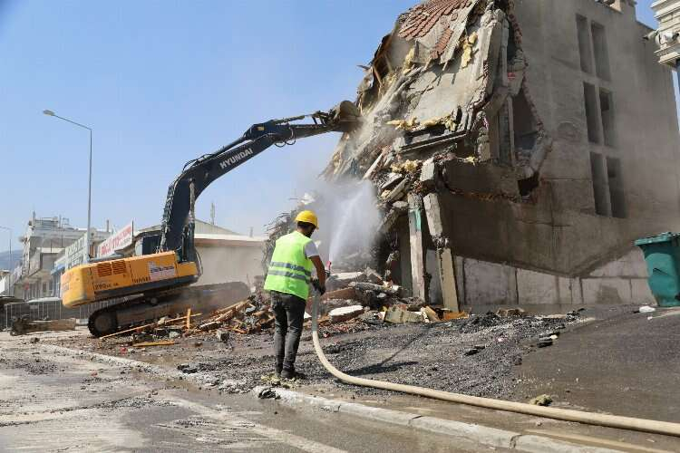 Binanın yola yakın olması nedeniyle öncelikle trafik polisleri tarafından yol güvenliği sağlanırken, yıkım Büyükşehir ekipleri tarafından gerçekleştirildi.