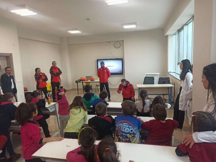 Doğal afetler sırasında yurt içi ve yurt dışında birçok yere yardıma koşan BAKUT ekibi, Bursa Çözüm Koleji İlkokul kademesindeki öğrencileri afet hakkında bilinçlendirmek için eğitim verdi.