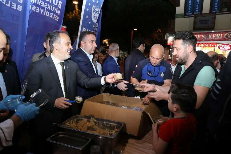 Bursa Büyükşehir Belediyesi’nin Cumhuriyet Caddesi’nde düzenlediği iftar programında yaklaşık on bin kişi oruçlarını birlikte açtı.