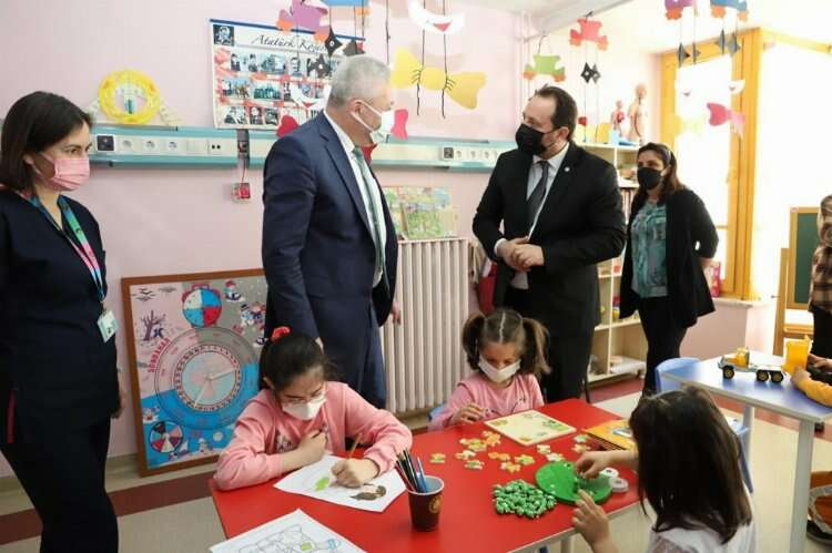 Protokolün imzalanmasının ardından İl Sağlık Müdürü Dr. Fevzi Yavuzyılmaz ve İl Milli Eğitim Müdürü Serkan Gür, hastane sınıfında çocuklarla bir araya gelerek bir süre sohbet etti.