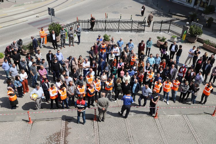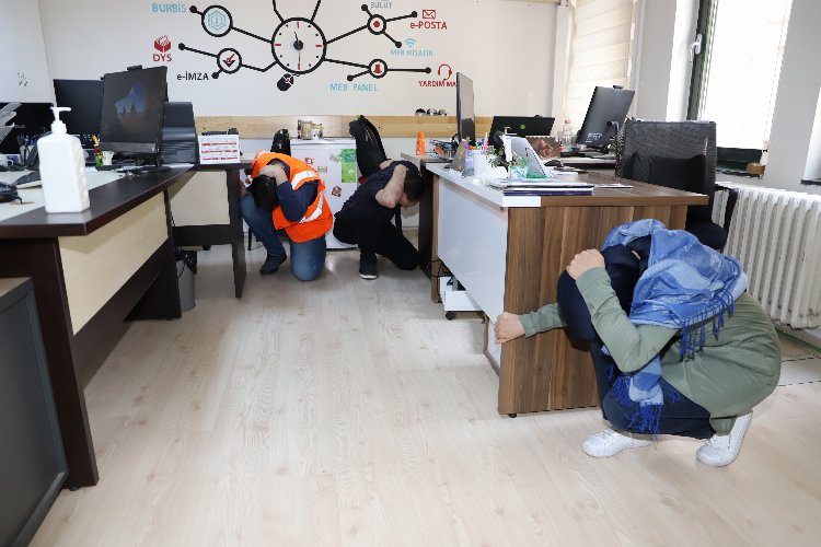 BURSA (İGFA) - İl Afet ve Acil Durum Müdürlüğü (AFAD) koordinesinde İl Millî Eğitim Müdürlüğü Arama-Kurtarma Birimi eş güdümünde gerçekleştirilen “Afet Eğitimi ve Tahliye Tatbikatı”nda Bursa İl Milli Eğitim Müdürlüğü hizmet binasında görevli tüm personelin katılımıyla deprem anı ve bina tahliye tatbikatı yapıldı.