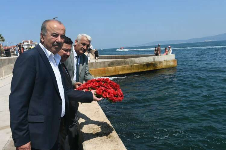 Mudanya Kaymakamı Ayhan Terzi, Belediye Başkan Hayri Türkyılmaz, Liman Başkanı Veysel Yaşar ve ilçe protokolünün hazır bulunduğu programda deniz şehitleri anısına suya çelenk bırakıldı.