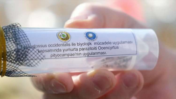 Batı çam tohum böceği (Leptoglossus Occidentalis) olarak bilinen ve istilacı bir yönü olan zararlıyı daha yumurta evresinde yok eden, arılarla aynı aileden olan Ooencyrtus pityocampae isimli böcek türü çam fıstığı ağaçlarına salındı.