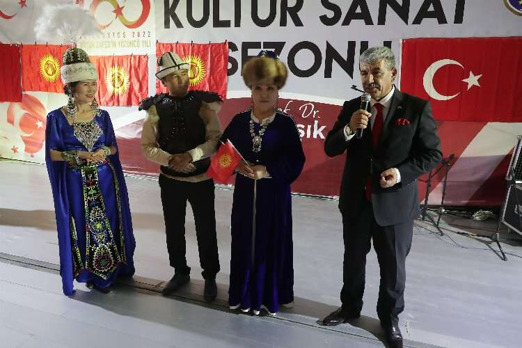 Kardeş ülke Kırgızistan’ın halk sanatçıları Narınbek Kalıbaev, Brulkan Stamkulova, Darıka Adatovna, Kırgızistan’ın milli kıyafetleri içinde söyledikleri Kırgızistan’a özgü eserler ile katılımcılara farklı bir gece yaşattı.