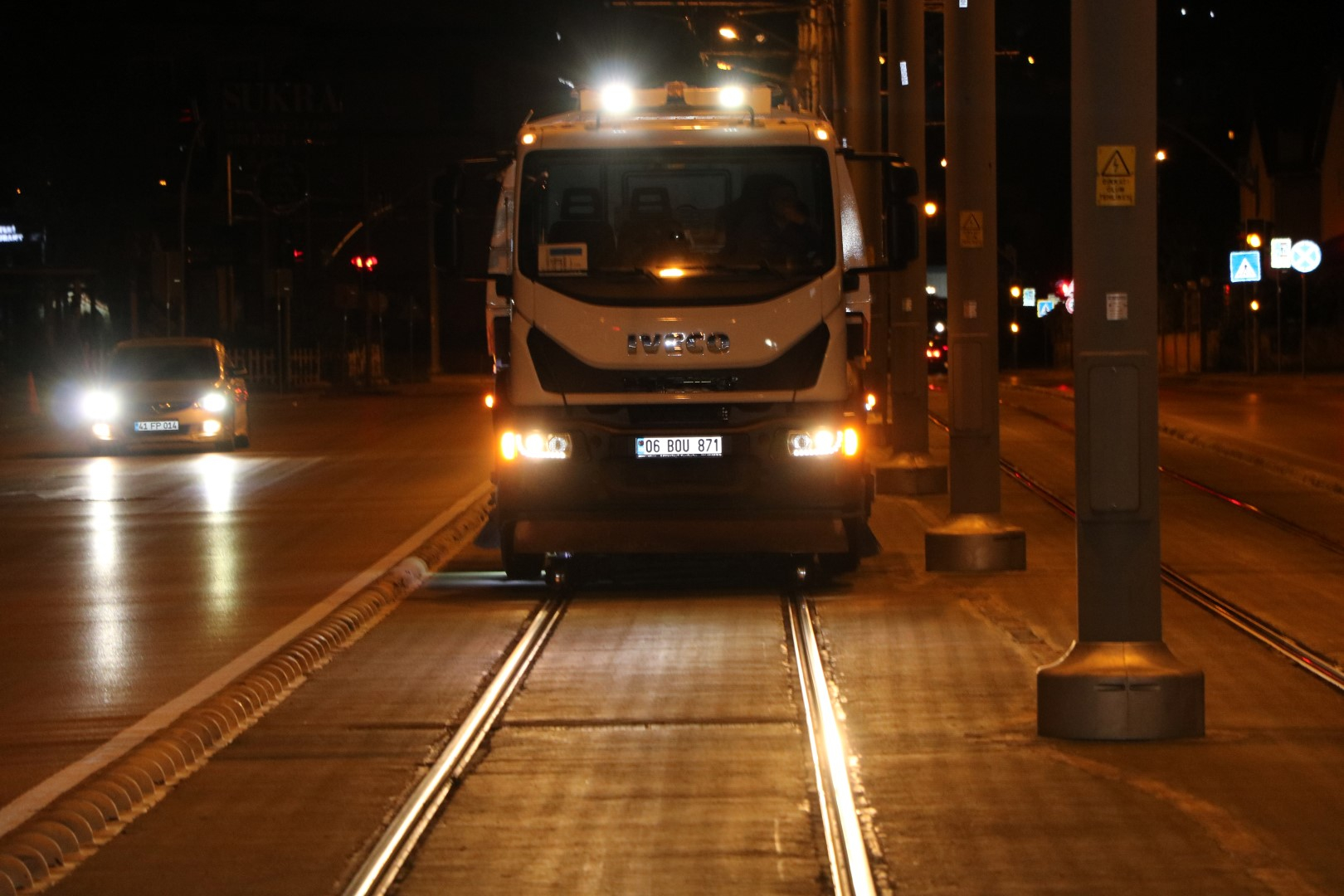 KOCAELİ (İGFA) - Kocaeli Büyükşehir Belediyesi, ana arterler başta olmak üzere şehir genelindeki cadde, durak, üst geçitlerde temizlik çalışması gerçekleştiriyor. Tramvay seferleri bitikten sonra tramvay yolu güzergahı da özel yol süpürme aracı ile her gece temizleniyor. Gece gündüz ayrımı yapılmaksızın yapılan temizlik çalışmalarıyla Kocaeli, yaşanabilir temiz bir kent haline geliyor.