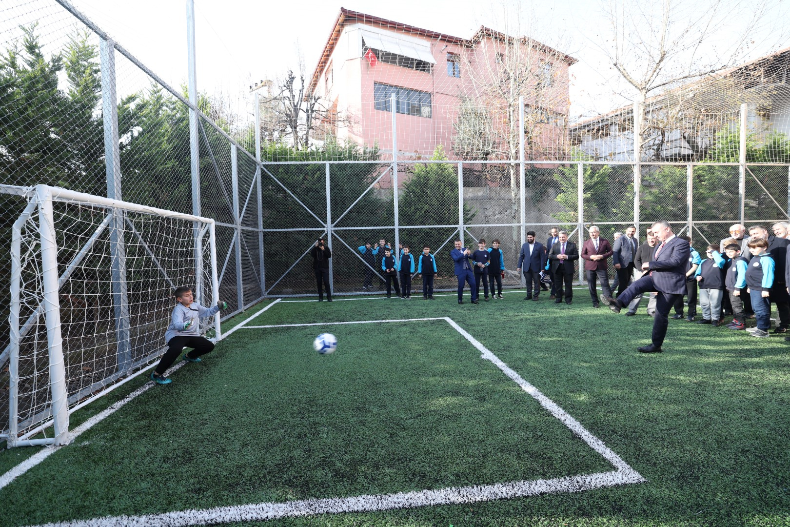 Kocaeli'de Eyüp Sultan İmam Hatip Ortaokulu’nda Büyükşehir Belediyesi'nin yaptırdığı halı saha ve MİKAV Vakfının kadın kollarının destekleriyle yapılan kütüphane hizmet alındı.