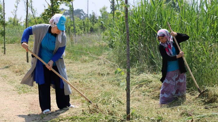 Miço Koyu Plajı’nda temizlik ve diğer tüm hizmetlerde Büyükşehir Belediyesi Park ve Bahçeler Dairesi personeli 6 bayan hizmet veriyor. Sezon öncesi temizlik çalışmalarına 7 erkek personel de katılıyor.