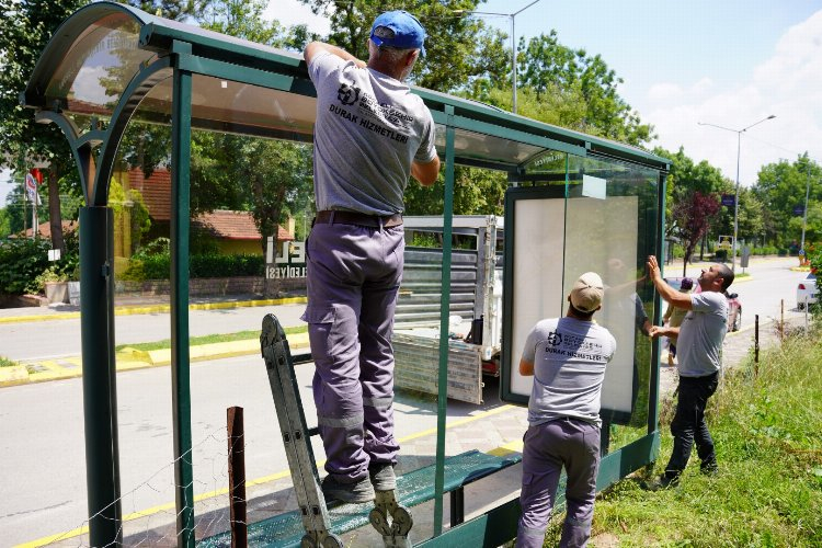 Kocaeli Büyükşehir Belediyesi, vatandaşlar için yeni durak imalatının yanı sıra eski durakların bakımı ve onarımını yapıyor