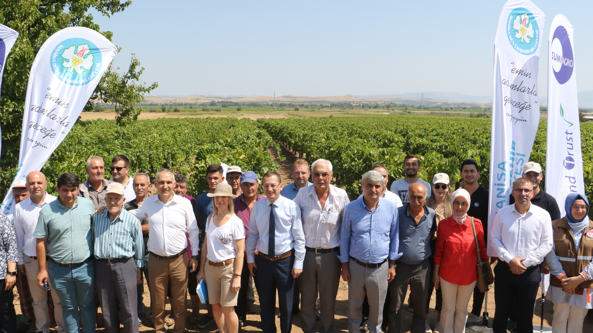 Yürütülen projenin sonuç kısmında protokol üyeleri, Ahmetli ilçesinde düzenlenen törende üzüm bağında bir araya gelerek sonuç incelemesi yaptı.