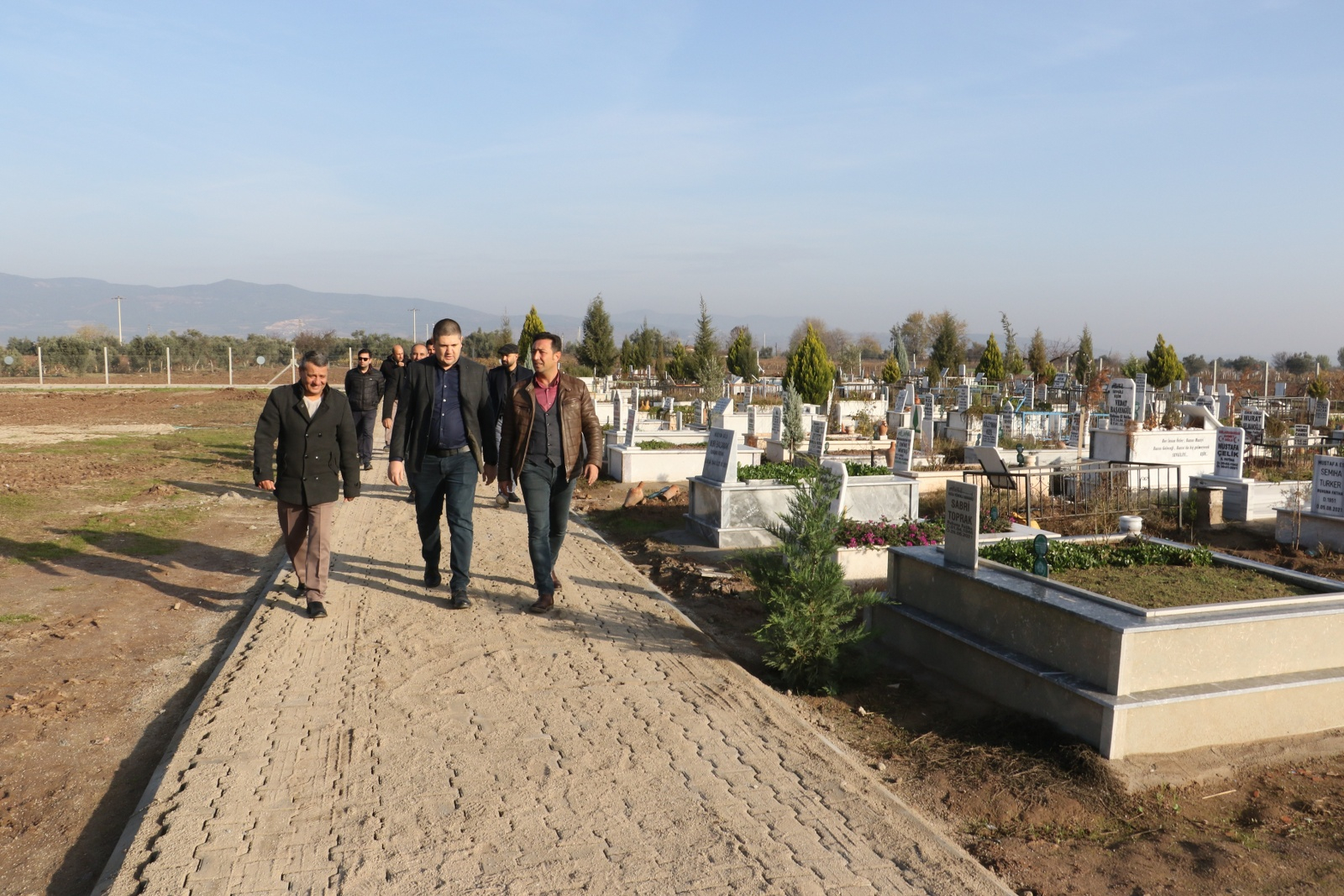 Manisa Büyükşehir Belediyesi Fen İşleri Dairesi Başkanı Uğur Topkaya, Mezarlıklar Dairesi Başkanı Orçun Abalı ile birlikte, Turgutlu ilçesine bağlı Urganlı Mahallesi mezarlığında Manisa Büyükşehir Belediyesi tarafından tamamlanan kilit parke taş düzenleme çalışmalarını yerinde inceledi.