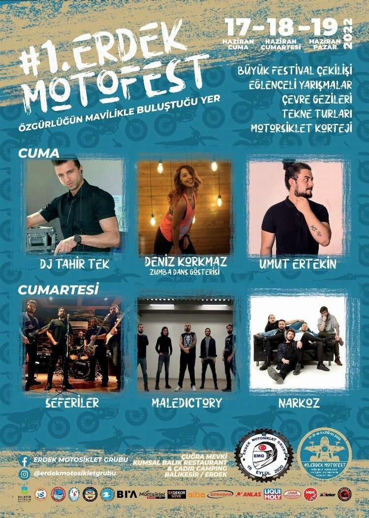 Başkanlığını Nihat Üner’in yaptığı Erdek Motosiklet Grubu Derneği ve sponsor firmalar tarafından organize edilen festivalin hazırlıkları tüm hızıyla devam ediyor. Hazırlanan festival programına göre sırasıyla; 17 Haziran Cuma günü 13.00-17.00 saatleri arasında Kapıdağ Korteji, 20.00’de festival alanına geçiş, saat 23:00’te festival alanında Umut Ertekin konseri ile ilk gün tamamlanacak.