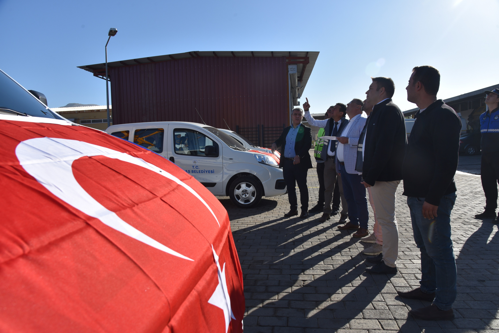 Milas Belediye Başkanı Muhammet Tokat, dış giydirme çalışmaları tamamlanan, hizmet vermeye hazır olan araçları Makine İkmal Bakım ve Onarım Müdürlüğü otoparkında inceledi.