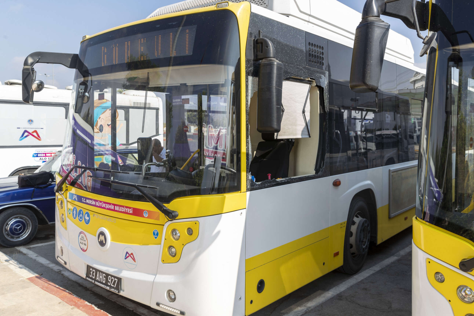 Mersin Büyükşehir Belediyesi toplu taşıma hattına ait otobüste, kendini bilmez bir vatandaş tarafından saldırı olayı yaşandı.