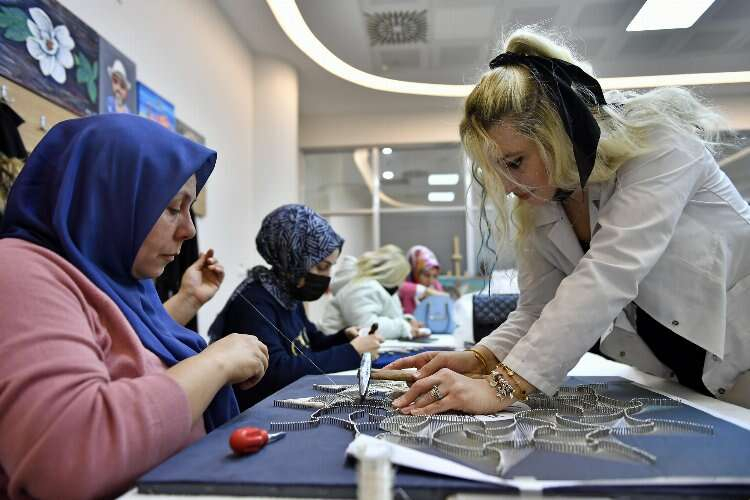 BURSA İGFA- Osmangazi Belediyesi’nin Halk Eğitim Merkezi işbirliğiyle ücretsiz olarak düzenlediği OSMEK Kursları, meslek sahibi olmayan vatandaşları çalışma hayatına kazandırıyor. Demirtaş Kültür Merkezi’nde verilen filografi eğitimlerinde kursiyerler; çivi çakma, tel tutma, tel örme ve desen çıkarmanın inceliklerini öğreniyor. Toplam 24 öğrencinin olduğu kursta, üniversite öğrencilerinden ev hanımlarına, emeklilerden çalışana kadar her yaş grubundan kursiyer bulunuyor. Bu sanatın tüm inceliklerini kavrayan kadınlar, sabırla örülen tellerden şaheserler ortaya çıkartıyor.